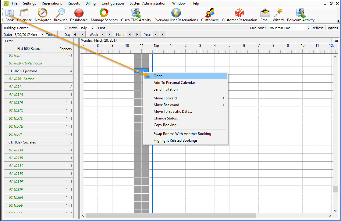 In the left pane of the Navigator window that opens, select the meeting for which you are importing the list of attendees/visitors, and in the Bookings pane on the right, click Tools, and then select Add Booking Details Wizard.